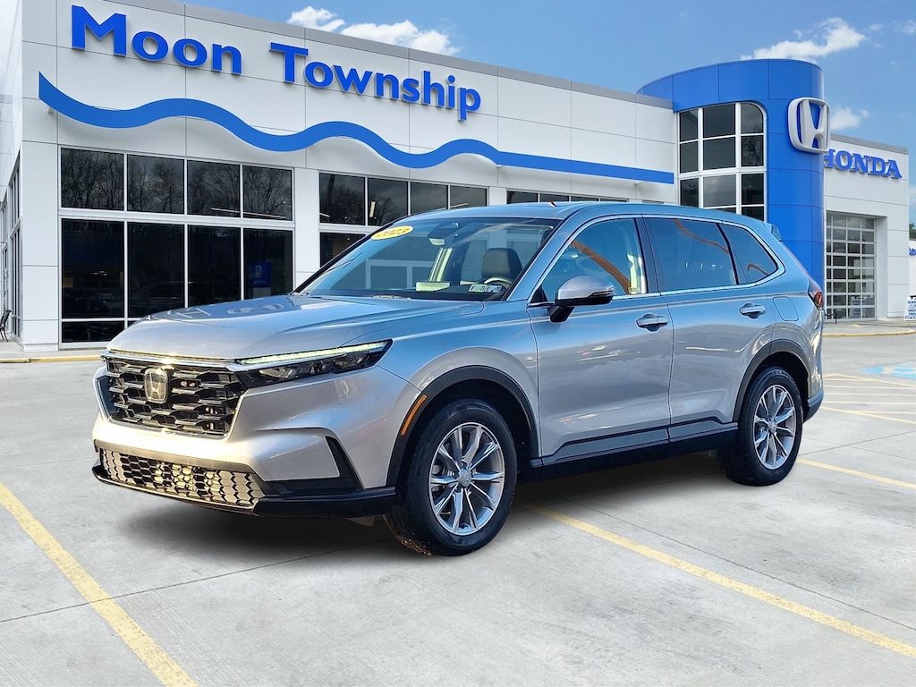 Recent Arrival! 2023 Honda CR-V EX Platinum White Pearl CLEAN VEHICLE HISTORY...NO ACCIDENTS, BOUGHT, SERVICED AND TRADED AT MOON TOWNSHIP HONDA, RECENT TRADE IN, SERVICE RECORDS AVAILABLE, MOONROOF SUNROOF, REMAINDER OF FACTORY WARRANTY, INCLUDES WARRANTY, HEATED SEATS, FUEL SAVER, ONE OWNER, AWD, 4-Wheel Disc Brakes, 6 Speakers, ABS brakes, Adaptive Cruise Control: Adaptive Cruise Control (ACC) with Low-Speed Follow, Alloy wheels, Apple CarPlay/Android Auto, Auto High-beam Headlights, Automatic temperature control, Bumpers: body-color, Compass, Delay-off headlights, Dual front impact airbags, Dual front side impact airbags, Electronic Stability Control, Exterior Parking Camera Rear, Four wheel independent suspension, Front anti-roll bar, Front dual zone A/C, Fully automatic headlights, Heated door mirrors, Heated Front Bucket Seats, Heated front seats, Illuminated entry, Knee airbag, Low tire pressure warning, Occupant sensing airbag, Outside temperature display, Overhead airbag, Panic alarm, Power door mirrors, Power driver seat, Power moonroof, Radio data system, Radio: 240-Watt AM/FM Audio System, Rear anti-roll bar, Rear side impact airbag, Rear window wiper, Remote keyless entry, Security system, Speed-sensing steering, Speed-Sensitive Wipers, Split folding rear seat, Spoiler, Steering wheel mounted audio controls, Tachometer, Telescoping steering wheel, Traction control, Turn signal indicator mirrors, Variably intermittent wipers, Wheels: 18" Sparkle Silver Metallic. CARFAX One-Owner. Clean CARFAX. 27/32 City/Highway MPG Priced below KBB Fair Purchase Price!