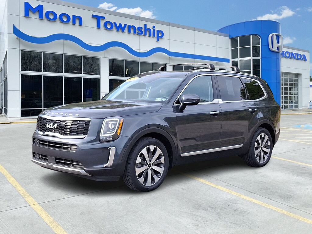Recent Arrival! 2022 Kia Telluride S Gravity Gray RECENT TRADE IN, NAVIGATION GPS NAV, MOONROOF SUNROOF, LEATHER, 7 PASSENGER, INCLUDES WARRANTY, HEATED SEATS, ONE OWNER, 20" x 7.5" Machined Alloy Wheels, 3rd row seats: split-bench, 4-Wheel Disc Brakes, 6 Speakers, ABS brakes, Alloy wheels, AM/FM radio: SiriusXM, Apple CarPlay & Android Auto, Automatic temperature control, Brake assist, Bumpers: body-color, Carpeted Floor Mats, Delay-off headlights, Dual front impact airbags, Dual front side impact airbags, Electronic Stability Control, Emergency communication system: 911 Connect, Four wheel independent suspension, Front anti-roll bar, Front dual zone A/C, Fully automatic headlights, Heated door mirrors, Heated Front Bucket Seats, Heated front seats, Illuminated entry, Illuminated Scuff Plates, Knee airbag, Leather Shift Knob, Leather steering wheel, Low tire pressure warning, Mud Guard Kit, Navigation System, Occupant sensing airbag, Outside temperature display, Overhead airbag, Panic alarm, Power door mirrors, Power driver seat, Power moonroof, Radio data system, Radio: AM/FM Display Audio System, Rear air conditioning, Rear anti-roll bar, Rear audio controls, Rear window wiper, Reclining 3rd row seat, Remote keyless entry, Roof rack: rails only, Security system, Smart Key w/ Push Button and Remote Start, Speed-sensing steering, Spoiler, Steering wheel mounted audio controls, Synthetic Leather Seat Trim, Tachometer, Telescoping steering wheel, Tow Hitch w/Harness, Traction control, Turn signal indicator mirrors, Variably intermittent wipers. CARFAX One-Owner. Priced below KBB Fair Purchase Price!
